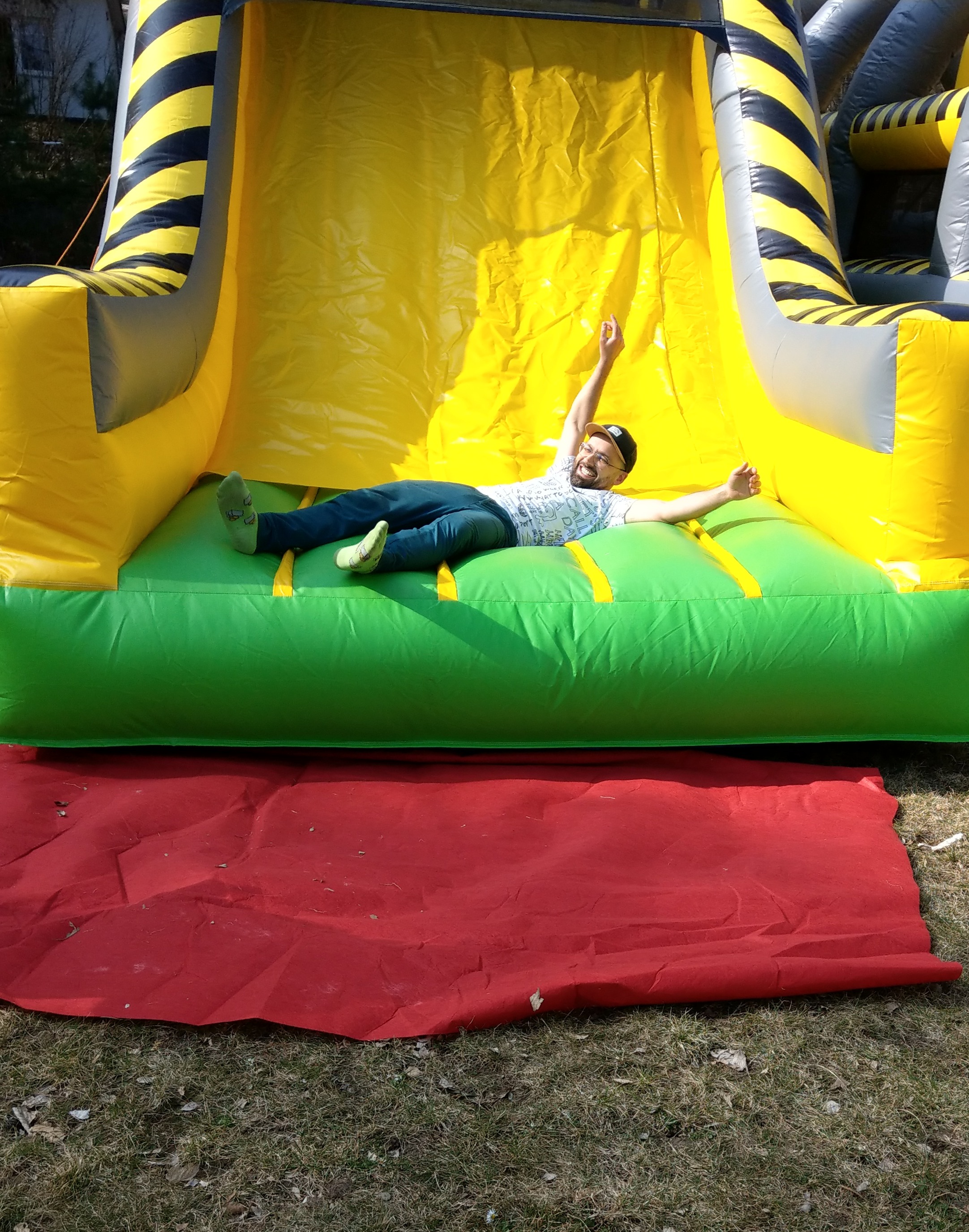 - trampolina wyposażona we wzmacniane D-Ringi o grubości 8mm zarówno w górnych partiach atrakcji jak i przy podłożu,